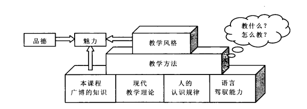 如图所示,一个合格的讲员是在本学科广博的知识、对现代教学理论的了解、对人的认识规律的研究和足够的语言驾驭能力等四个基石之上,逐步形成某门课程独特的教学方法;加之个人的思维习惯、语言特点、表述方式乃至性格,进而形成自己的教学风格。