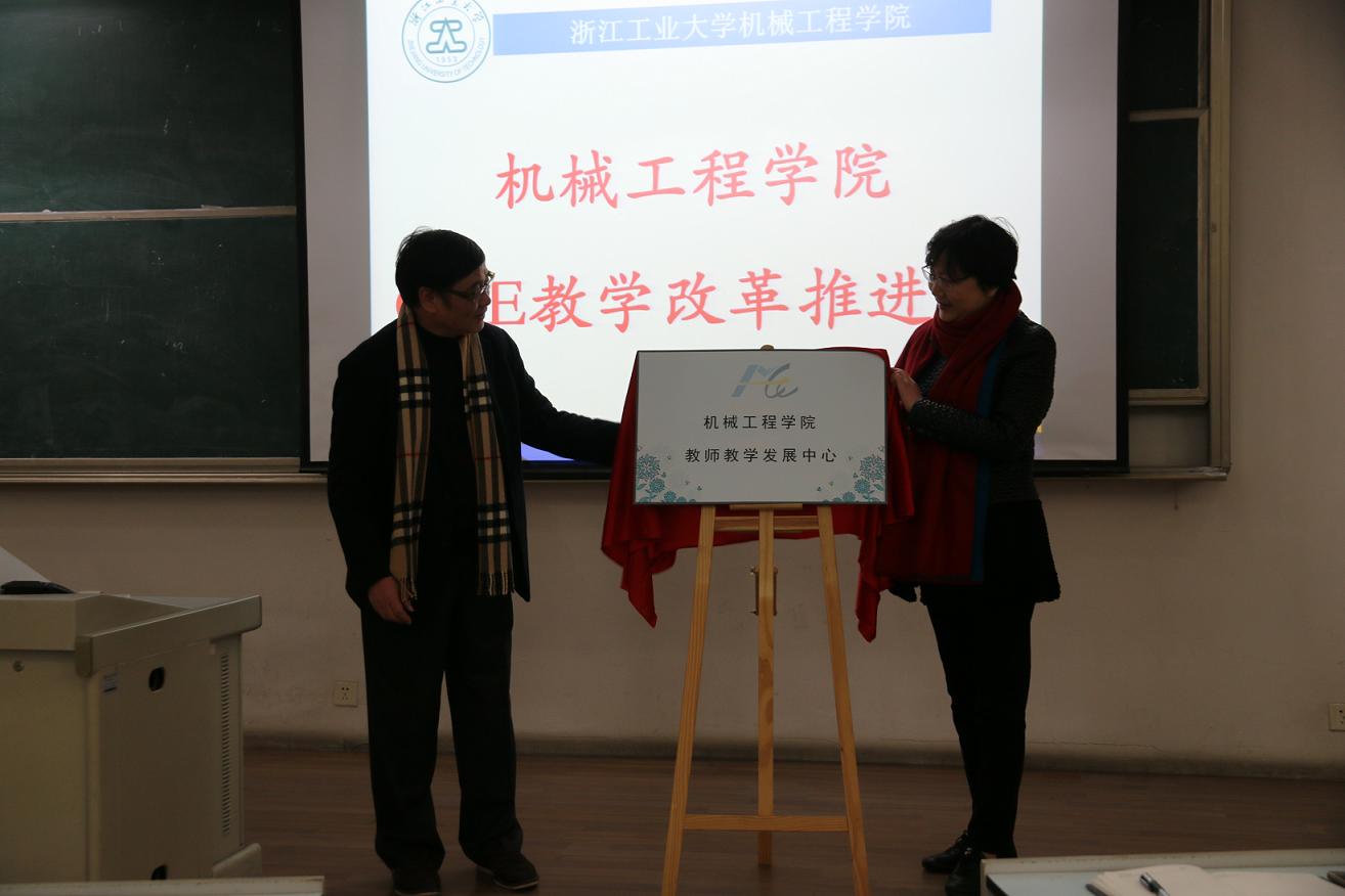 随后胡慧玲老师和柴国钟老师为机械工程学院教师教学发展中心揭牌,我校首家二级学院教师教学发展中心正式在机械学院成立。