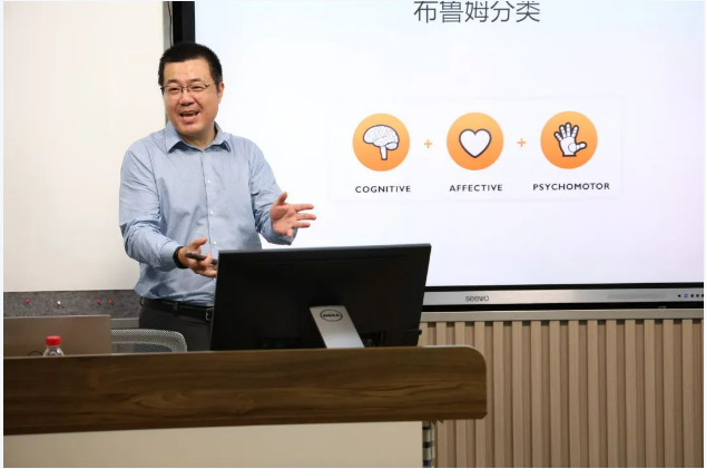 研修班第一课由上海交通大学资深培训师邢磊博士开讲。他从指导教师视角给青年教师进行教学设计专项训练,通过学习目标、教学活动和评估策略三方面讲授了如何系统化进行教学设计,并通过课堂导入技巧、教学开展策略、讲课的层次和课堂总结方法四个方面介绍了课堂教学实用策略。讲座后大家围绕课堂教学和青教赛等内容展开充分的交流。